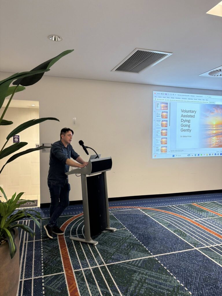 The evening continued with the 2024–2025 Presidential Report, highlighting two years of strong momentum, advocacy successes, community visibility, and growing cross-sector engagement. The Treasurer’s Report was presented shortly after, followed by an excellent talk on Voluntary Assisted Dying delivered by Dr Silkie Price and Dr Gareth Davies.